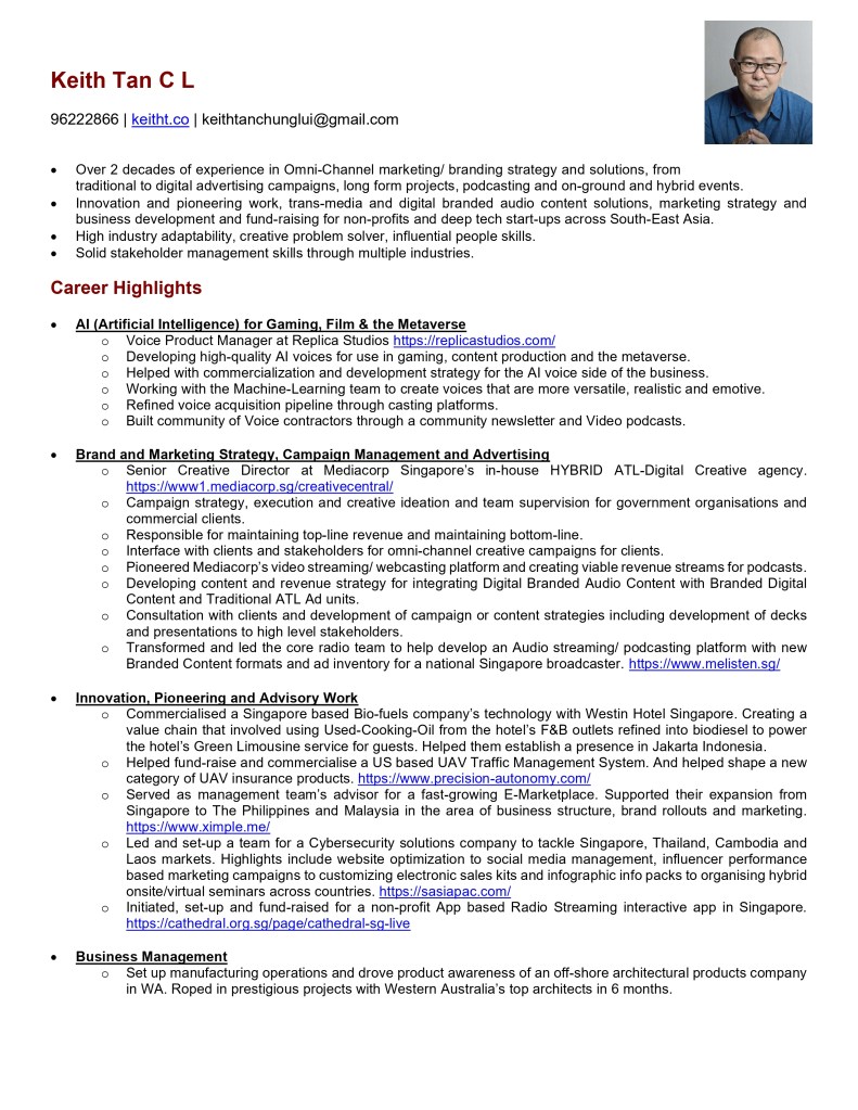 For a more in-depth view of my career highlights, read through these or view the PDF below: Keith Tan Chung Lui CV Share this: Share on X (Opens in new window) X Share on Facebook (Opens in new window) Facebook Like Loading...